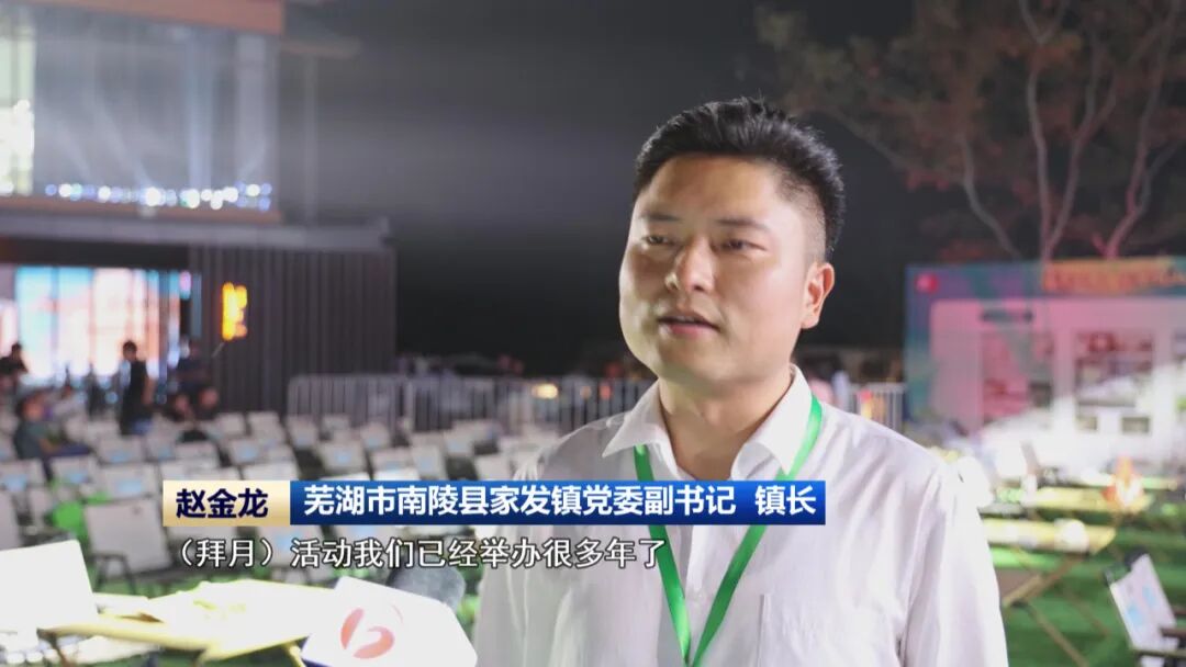 蕪湖市南陵縣家發(fā)鎮(zhèn)黨委副書記 鎮(zhèn)長 趙金龍:(拜月)活動我們已經(jīng)舉辦很多年了,通過挖掘我們的傳統(tǒng)民俗文化,把中秋節(jié)闔家團圓的氣氛呈現(xiàn)給大家。