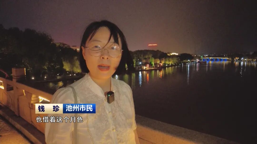 池州市民 錢珍:今天晚上景色非常地美,也借著這個月色,祝福我們的國家越來越強大。